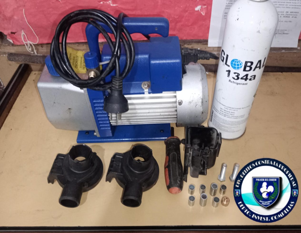 Ya por la tarde, obtuvieron información precisa que un sujeto estaba ofertando una bomba de vacío por el barrio Palermo II y orientaron los patrullajes hacia allí. Por la avenida San Martín al 3500 aproximadamente demoraron a un joven que transportaba dicho elemento y herramientas. Constataron que estos bienes eran buscados por un hurto con escalamiento cometido hace tiempo. El demorado de 22 años fue conducido a la dependencia policial y notificado de su aprehensión a disposición de la fiscalía en turno.
