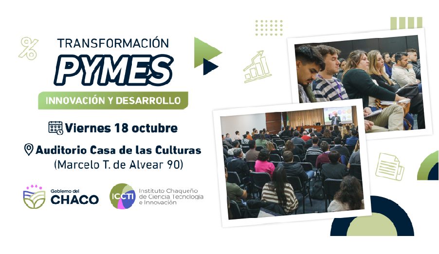 El Gobierno del Chaco, a través del Instituto Chaqueño de Ciencia, Tecnología e Innovación (ICCTI), invita a participar del evento que se realizará el 18 de octubre en el Auditorio de la Casa de las Culturas. “Transformación Pymes: Innovación & Desarrollo” es una iniciativa que busca acercar herramientas, repasar los instrumentos financieros y de empleo disponibles y generar nuevos vínculos de negocio. El evento está destinado a emprendedores, empresarios y consultores y contará con la presencia de actores del sector público, privado y académico.