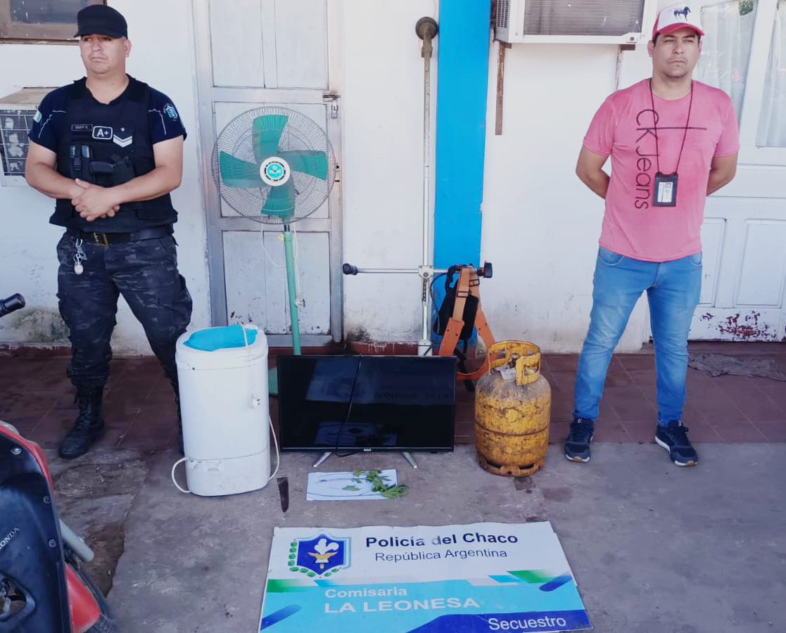Se detuvo al dueño de la casa del barrio Itatí, un hombre de 24 años, por “supuesto encubrimiento” al encontrarse elementos relacionados a cuatro delitos distintos. Entre ellos, una desmalezadora Sthil valuada en medio millón de pesos relacionada a una causa de “supuesto robo”, luego un tubo de gas de 10 kg coincidente en una investigación por “supuesto hurto”; también se incautó una Tv de 32” valuada en casi $400.000 buscada por “supuesto robo” y , por último, encontraron un secarropas valuado en más de $250.000 y un ventilador de pie, ambos relacionados a otra causa de “supuesto robo”.