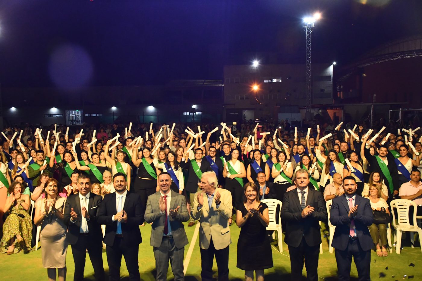 El acontecimiento de la Universidad Nacional del Chaco Austral tuvo un importante marco de público para celebrar la finalización de estudios, en el corriente año, de 140 personas. Este evento se realizó en la cancha de hockey del establecimiento, como parte de los festejos del 17º Aniversario.