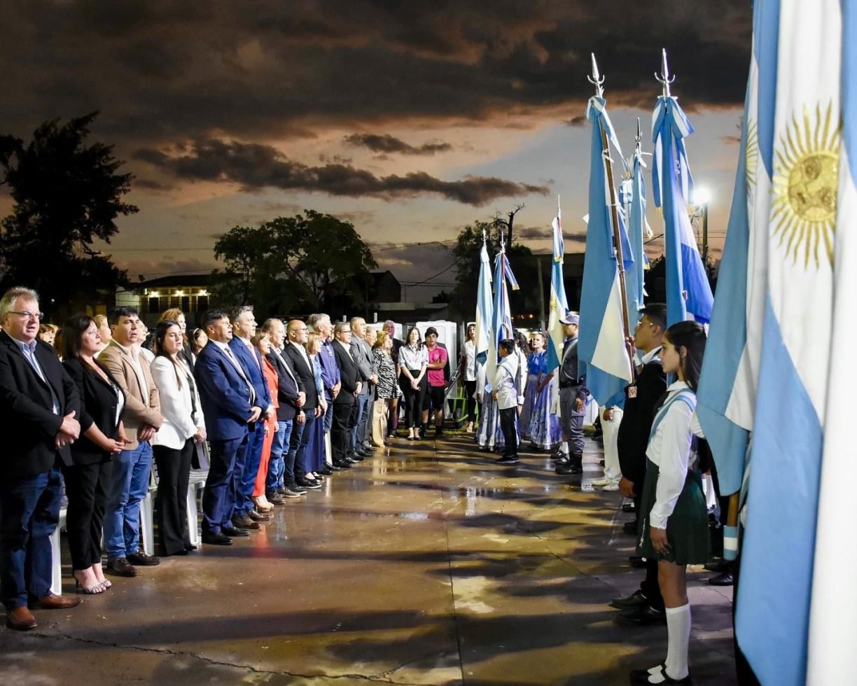 El gobernador, Leandro Zdero, junto a la vicegobernadora, Silvana Schneider y el intendente de Quitilipi, Ariel Lovey, encabezó anoche el acto central del 112° aniversario de la localidad.