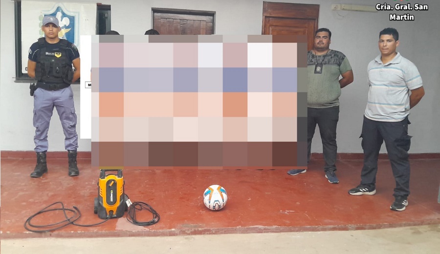 En un operativo preventivo realizado ayer en el barrio El Olvido II, personal del servicio externo de la Comisaría General San Martín interceptó a un grupo de jóvenes que intentaba comercializar una hidrolavadora y una pelota de fútbol a bajo costo, sin poder justificar la procedencia de los mismos.