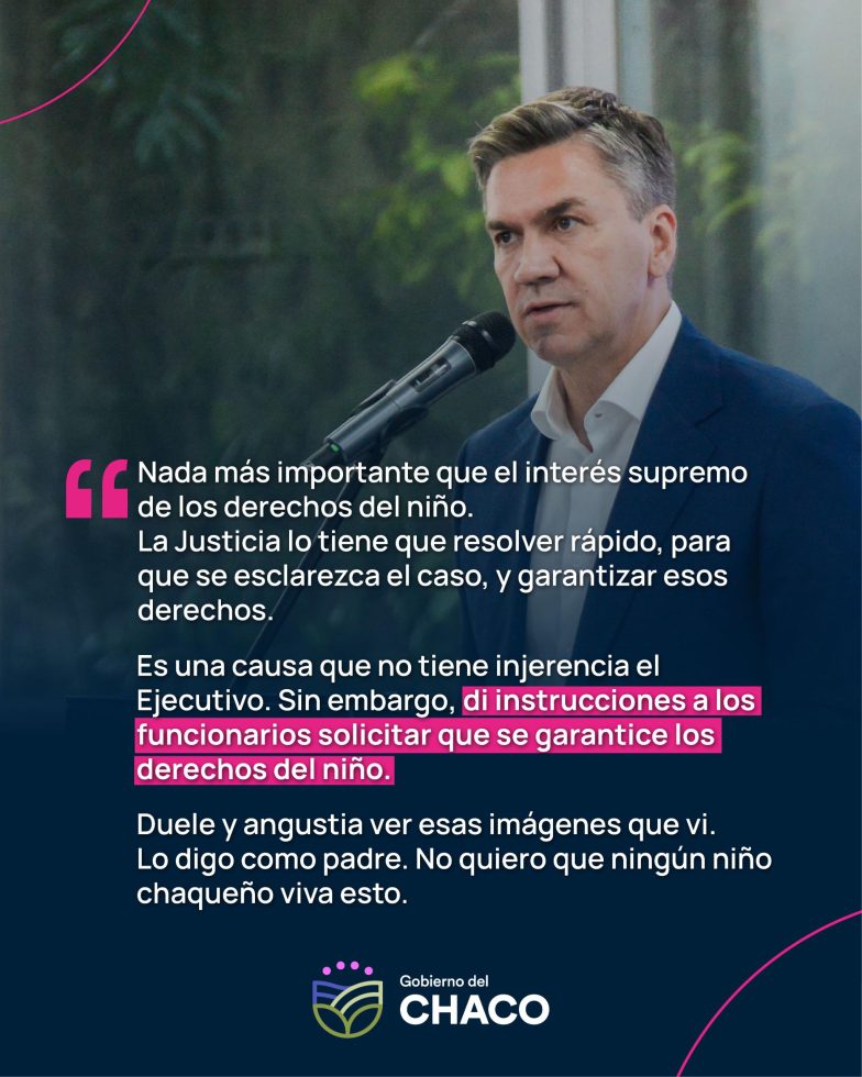 Aunque aclaró que el caso no está bajo la órbita del Poder Ejecutivo, el gobernador señaló que dio instrucciones precisas para que el gobierno brinde apoyo a las partes involucradas. En este marco, la subsecretaria de Justicia, Elina Nicoloff, y la Defensora Oficial mantuvieron una reunión para atender las necesidades de la familia.