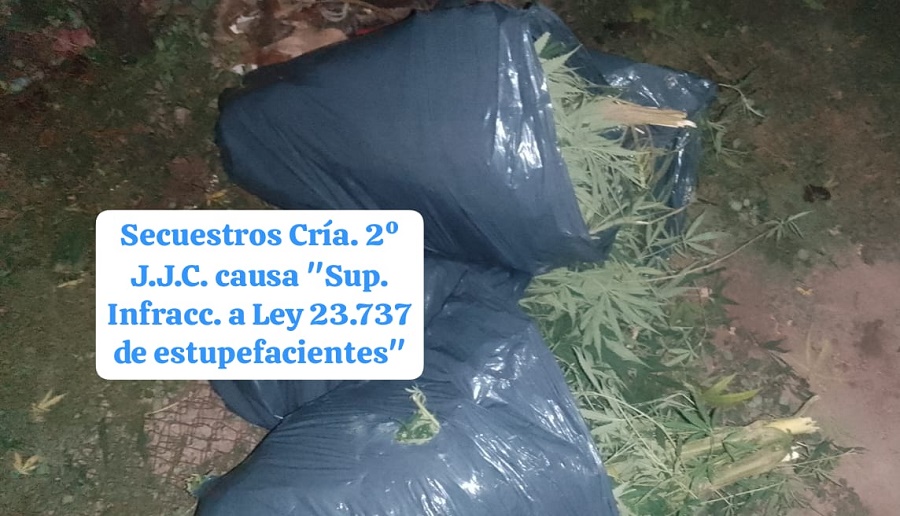 Se procedió al secuestro de un total de 14 plantas de marihuana. La Fiscalía Antidrogas N° 1 dispuso que se inicien actuaciones por Supuesta Infracción a la «Ley 23.737 de Estupefacientes.