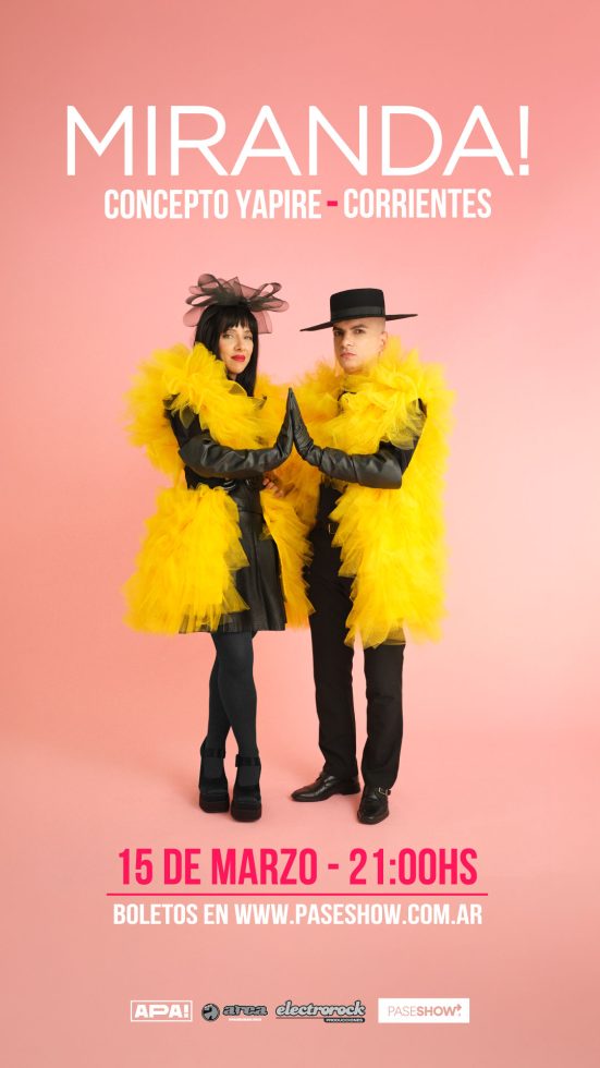 Miranda! anunció su regreso a la ciudad de Corrientes para el 15 de marzo, a las 21 horas, en el escenario del Concepto Yapiré (Alfonsín 3701). Ale Sergi y Juliana Gattas vuelven a la región con el éxito de su último trabajo discográfico que causó furor en la escena de la música latina.