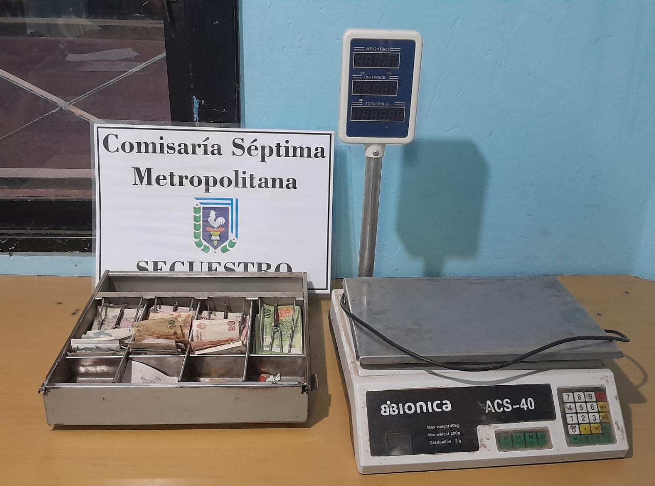 Esta madrugada, los agentes de la Comisaria Séptima fueron informados por parte de un ciudadano de 51 años, manifestando que se despertó ante ruidos extraños provenientes de su negocio. Al investigar, descubrió a un hombre intentando huir por la ventana, llevando consigo una balanza y 14.770 pesos.