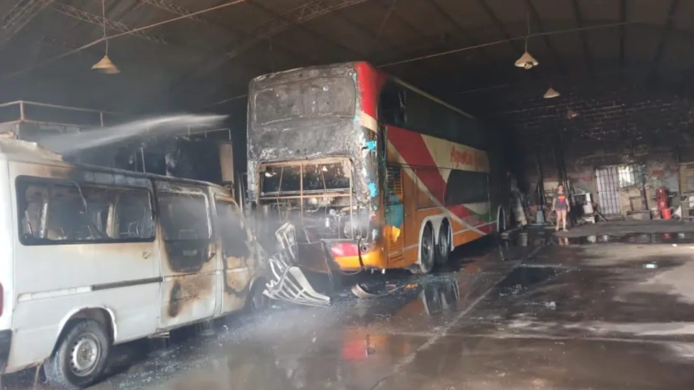 En el interior del galpón se encontraban tres vehículos: un colectivo Mercedes Benz con la inscripción de «Agustin Bus», otro rodado de la misma marca con carrocería Marco Polo, de colores blanco, rojo y marrón, y una trafic. Todos sufrieron daños parciales a causa del fuego.