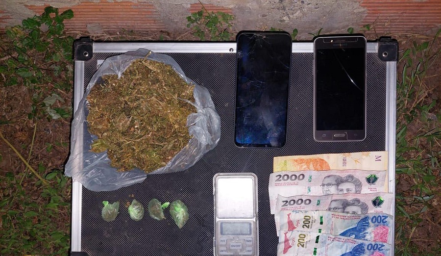 Luego le solicitaron que exhiban sus pertenencias, los efectivos encontraron un envoltorio mediano con marihuana y una balanza de precisión, además de cuatro envoltorios más pequeños con la misma sustancia y $5.400 en efectivo. También se incautaron dos teléfonos celulares.