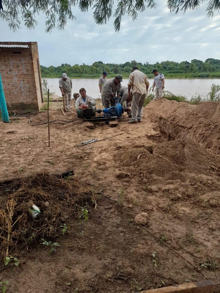Agentes de zona V se encuentran trabajando para dejar en condiciones y fortalecer las instalaciones que posee la empresa y así continuar brindando el servicio de agua potable a los usuarios de El Sauzalito, pese a la crecida del río Bermejo. Los trabajos realizados son permanentemente monitoreados por el presidente de la empresa, Ing. Nicolás Diez y el coordinador de zona V, Hugo Sánchez.