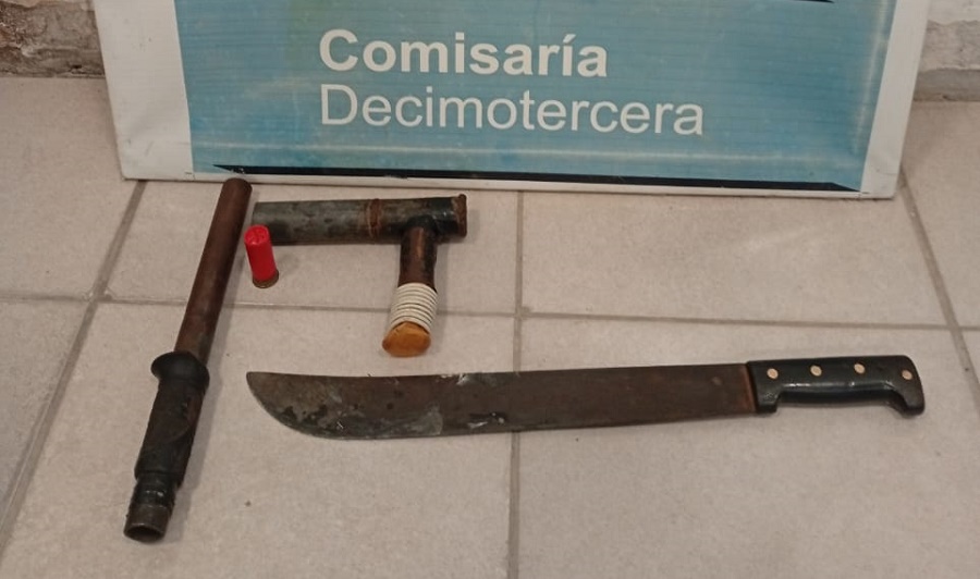 El detenido, domiciliado en el barrio Camalote, tenía en su poder un machete de 40 cm de hoja y una «tumbera» con un cartucho calibre 12 sin percutar, los cuales fueron secuestrados.