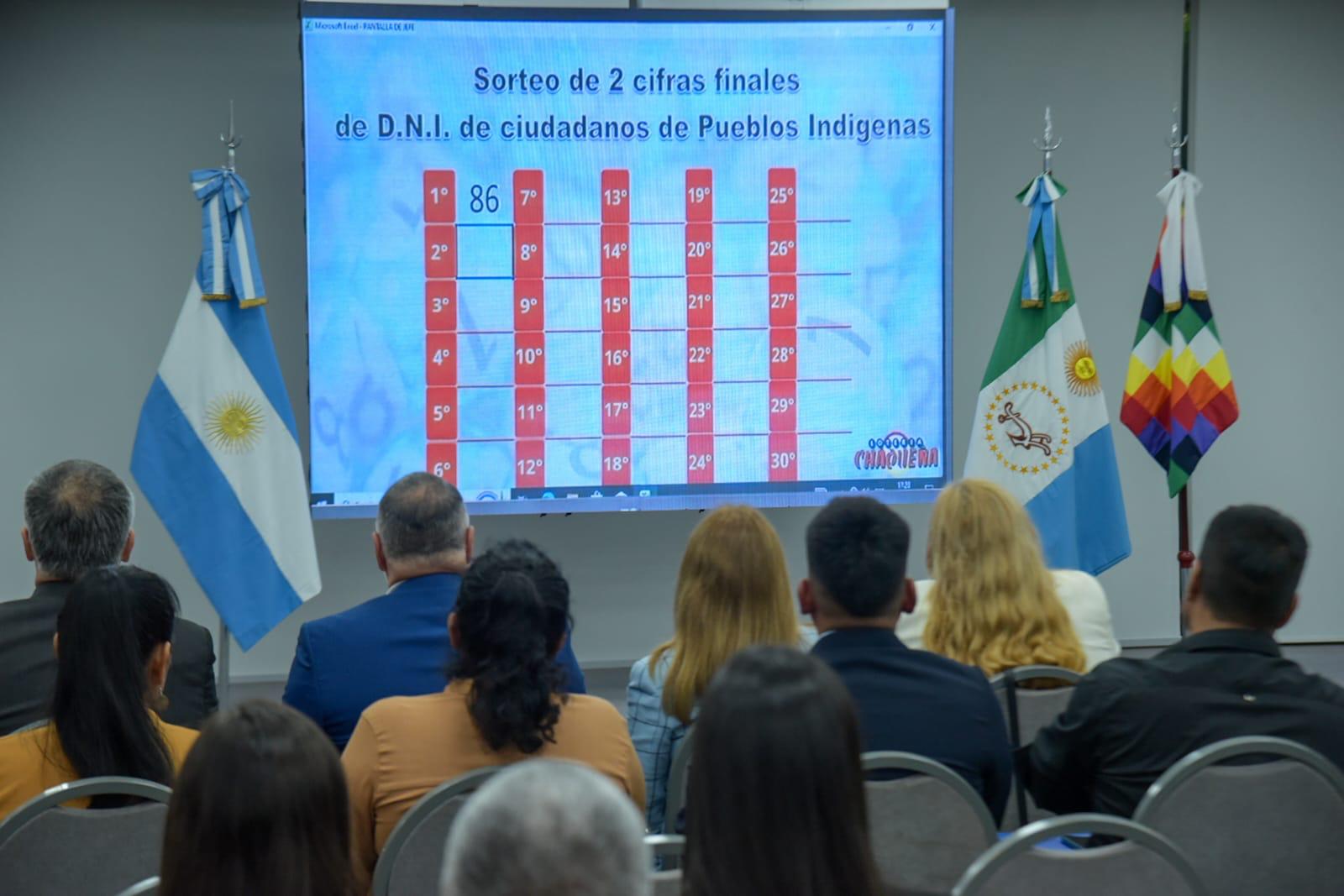El mecanismo del sorteo consistió en la extracción mecánica de números compuestos por dos cifras, que corresponden a las dos últimas cifras del Documento Nacional de Identidad de ciudadanos indígenas incluidos en el padrón electoral vigente. Estas cifras determinan la integración de la lista base de potenciales jurados en las circunscripciones judiciales I a VI.