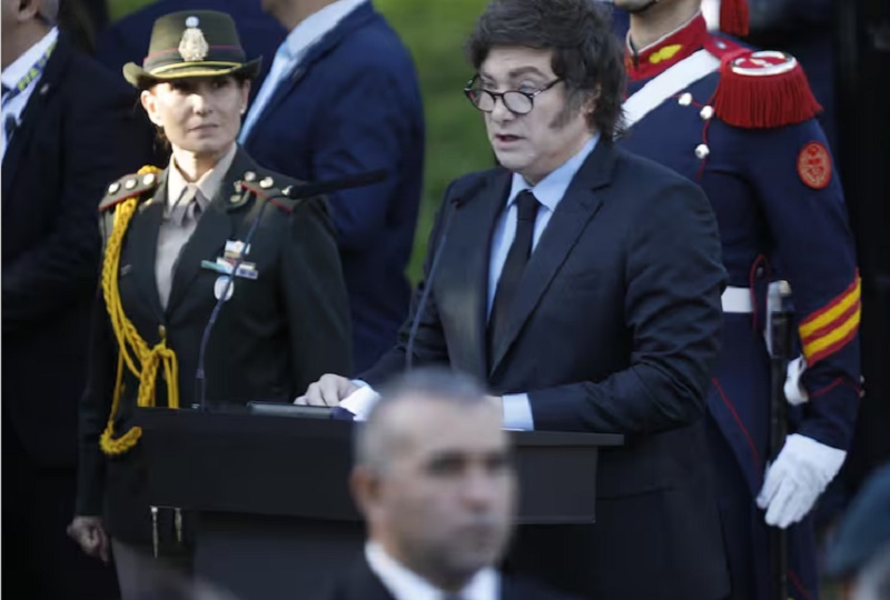 En primer término, Milei reconoció a los veteranos y caídos, y también a sus familias, por el “sacrificio” que hicieron desde las épocas del conflicto y dijo que su manera de honrarlos era reafirmando el reclamo por la soberanía