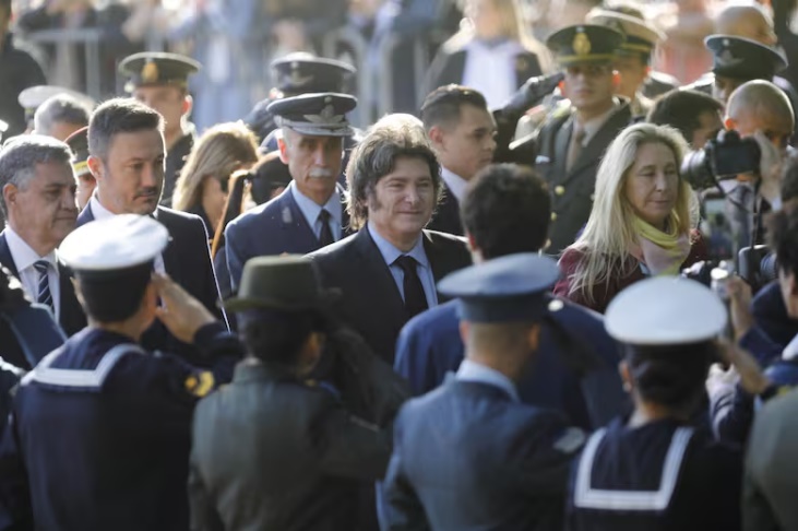 Al llegar, Milei atravesó un pasillo acompañado por su hermana, la secretaria general de la Presidencia, Karina Milei. Lo recibió el jefe de Gobierno porteño, Jorge Macri. Ambos mandatarios, junto a una comitiva de funcionarios nacionales, primero realizaron un saludo en la placa del “soldado desconocido”. Después colocaron una ofrenda floral al pie del monumento a los héroes y se hizo un minuto de silencio. A diferencia de otros años, hubo poca gente y se desplegó un importante operativo de seguridad.
