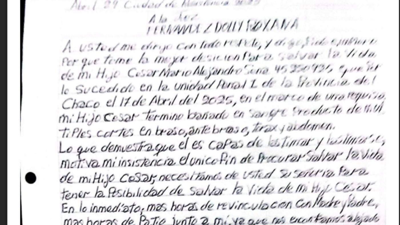Las misivas surgieron luego de una requisa en el Complejo Penitenciario I de Villa Barberán, donde agentes penitenciarios incautaron una olla y una pava de su celda. Según relató, el procedimiento fue violento y terminó afectando a César, quien se autolesionó en la celda contigua. «Lo veo cada vez más inestable. Temo por su vida», alertó.