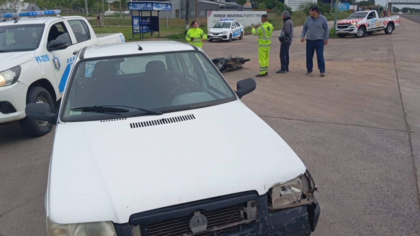 Un grave accidente de tránsito se registró esta mañana en la colectora de la Ruta Nacional 16, a la altura del kilómetro 24, en jurisdicción de Puerto Tirol. El siniestro involucró a un Fiat Uno blanco, conducido por un hombre de 49 años, y una motocicleta Honda Wave negra, manejada por un joven de 27 años.