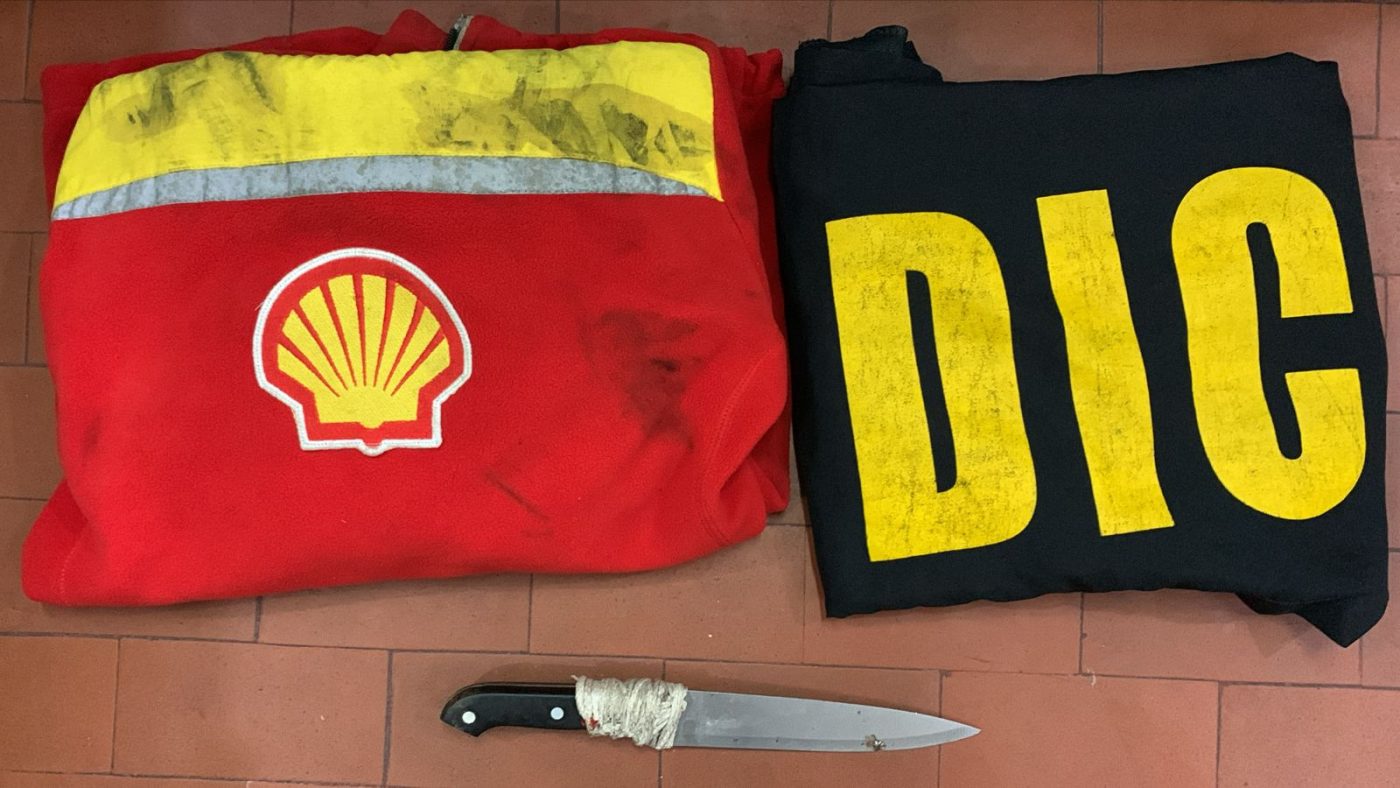 Durante un operativo de búsqueda en la zona, efectivos observaron a un hombre cuyas características coincidían con las del sospechoso, en la intersección de calle Los Andes y calle 5. Al requisarlo, se le encontró entre sus pertenencias un cuchillo y el buzo rojo mencionado.