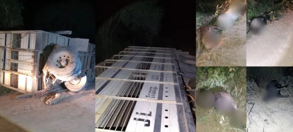 El semirremolque, habilitado por SENASA, se encontraba recostado sobre su lateral derecho, sin obstruir el tránsito. Alrededor del vehículo se hallaban esparcidos los restos de quince animales vacunos muertos: once machos y cuatro hembras, todos en avanzado estado de descomposición. Según el médico veterinario del organismo, las reses no eran aptas para el consumo y desaconsejó su incineración por los fuertes olores que emanaban.