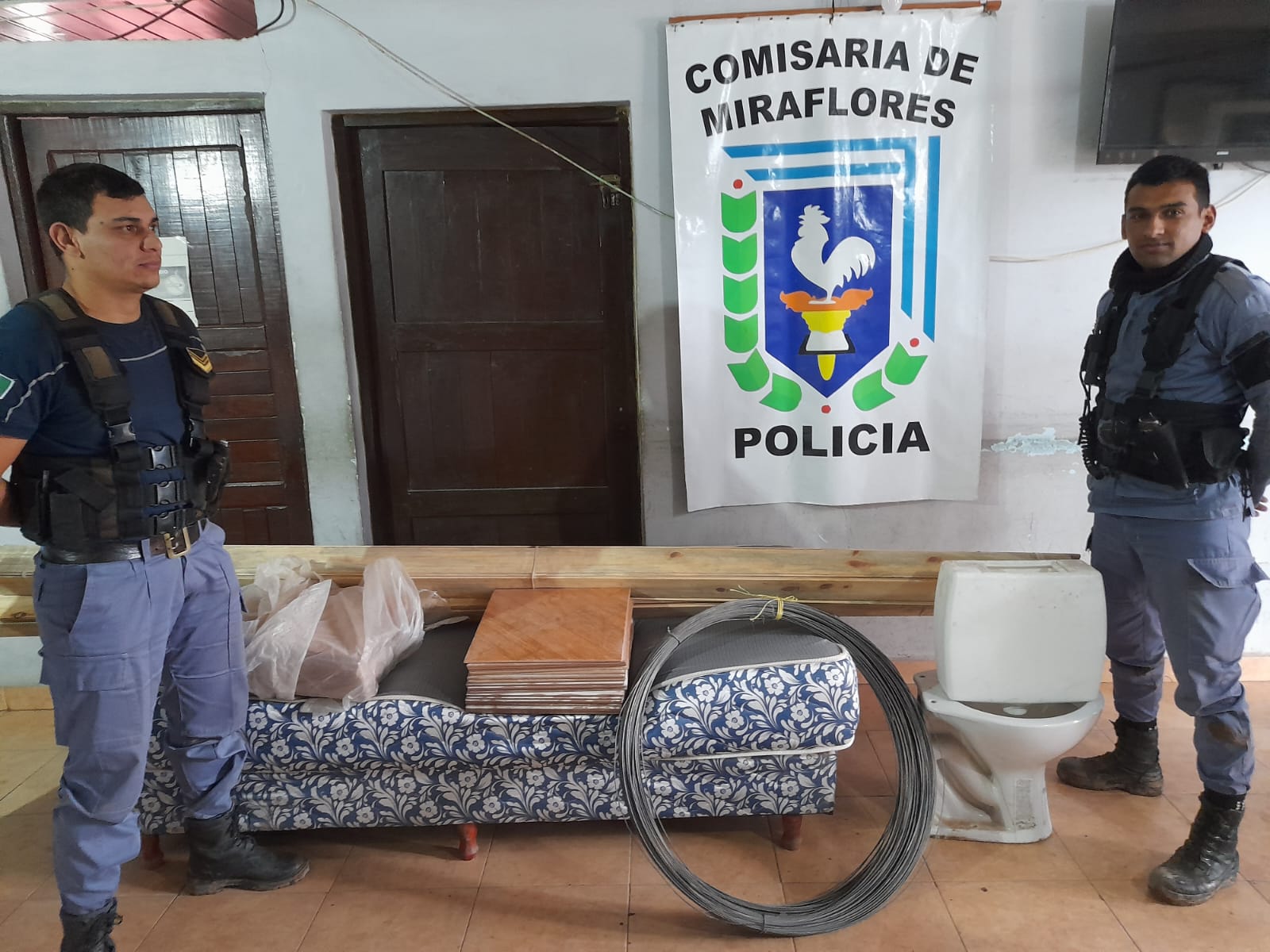 En la jornada de este sábado, personal de la comisaría de Miraflores logró esclarecer un hecho de “Supuesto Hurto” ocurrido en una vivienda en construcción del barrio Chatita, tras hallar una gran cantidad de elementos que estaban ocultos entre la maleza en un sector boscoso del Lote 93.