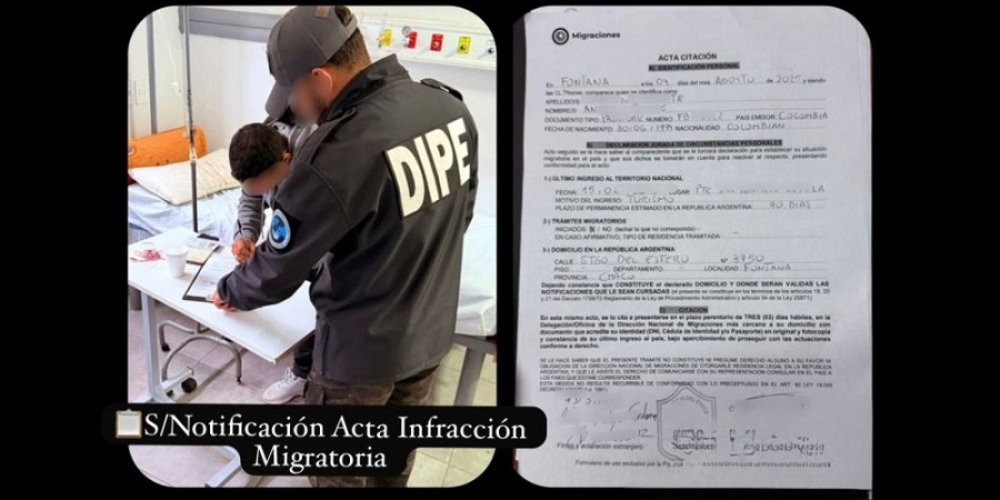 La Dirección Nacional de Migraciones informó que dará seguimiento a la situación del ciudadano colombiano. La policía local refuerza así sus acciones en coordinación con organismos nacionales para controlar el ingreso y permanencia en el territorio.