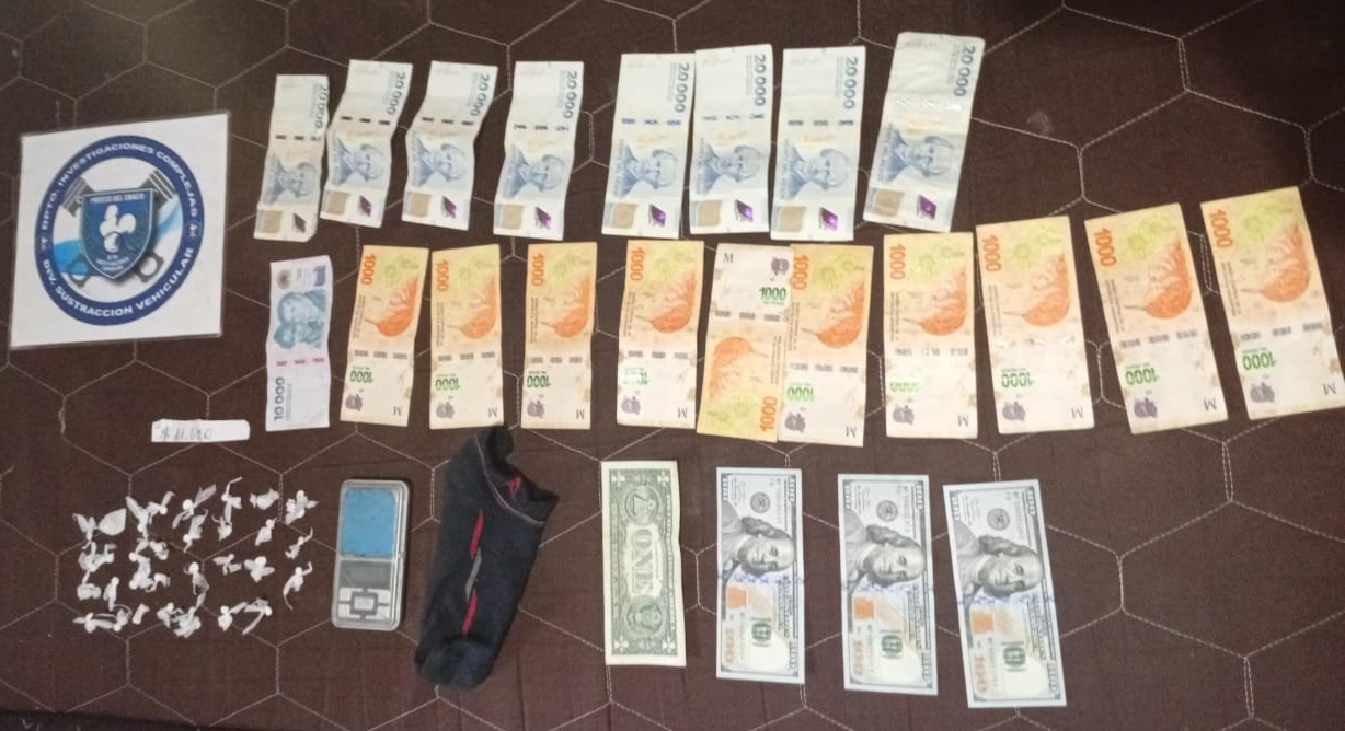 En uno de los inmuebles allanados, se procedió al secuestro impostergable de los siguientes elementos: 38 bochitas de cocaína, una balanza digital, dinero en efectivo: $269.000 y 301 dólares. Tres cartuchos calibre 9 milímetro.