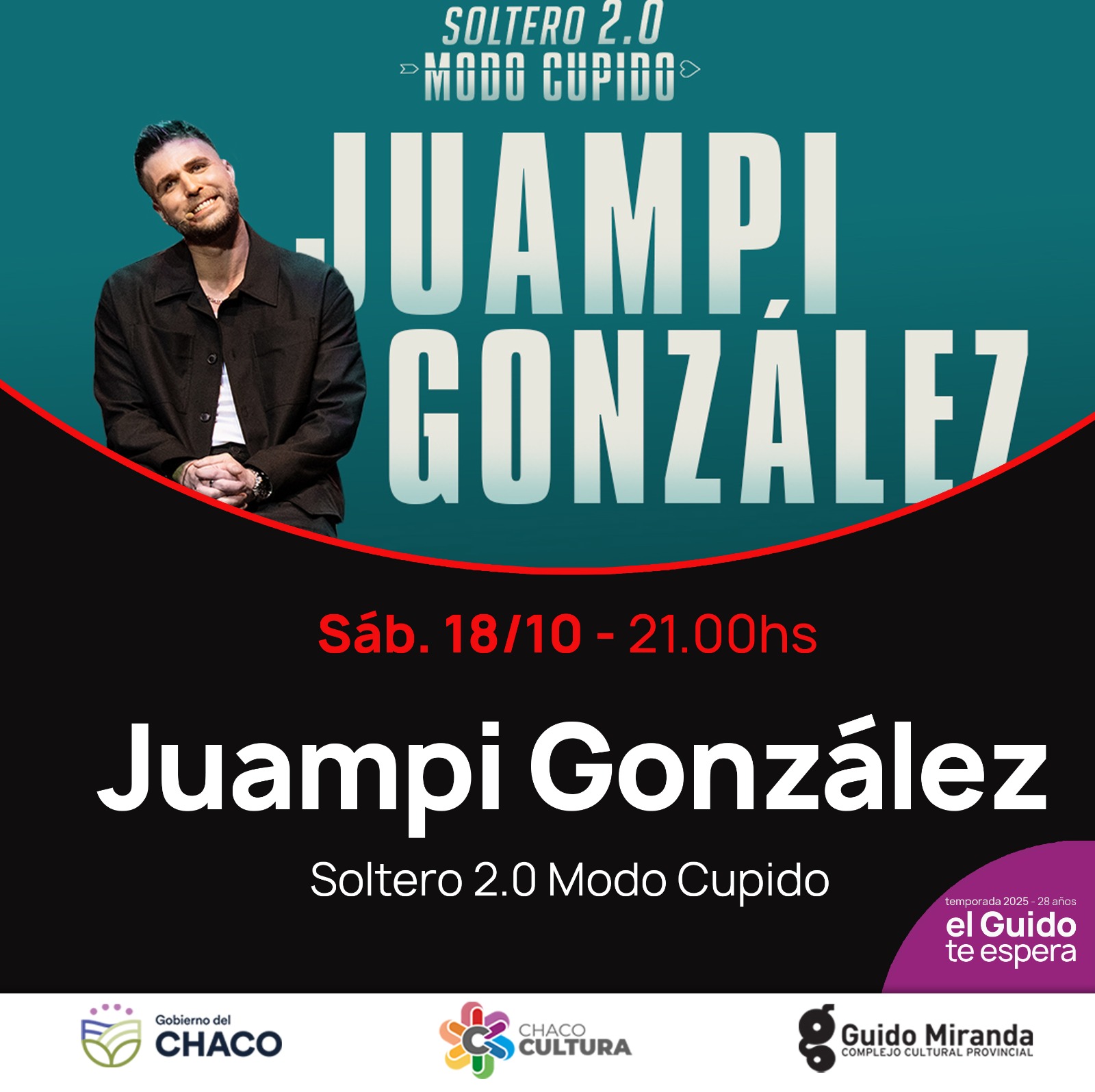 El sábado 18 de octubre, a las 21, en el Complejo Cultural Guido Miranda (Colón 164), dependiente del Instituto de Cultura del Chaco, se presentará el humorista Juampi González con “Soltero 2.0 Modo cupido”.