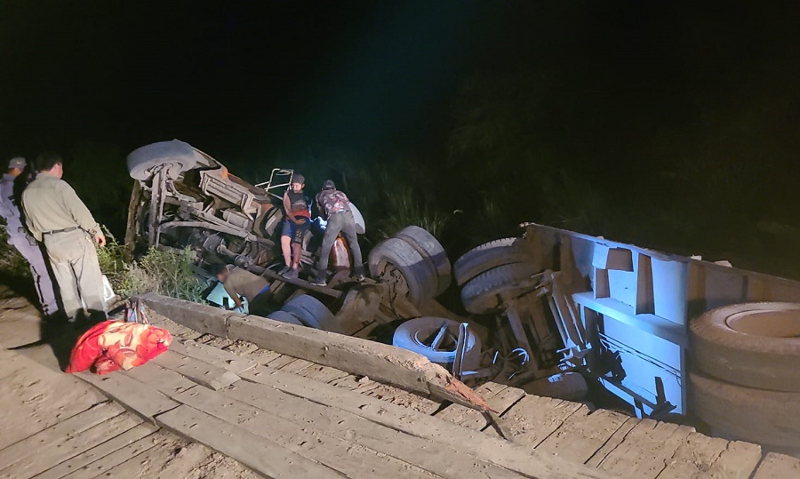 Durante la madrugada de este jueves, personal policial de la Comisaría de Cote Lai intervino en un siniestro vial ocurrido sobre la Ruta Provincial N° 49 kilómetro 5, donde un camión que transportaba rollizos despistó y cayó parcialmente debajo de un puente de vigas de madera.