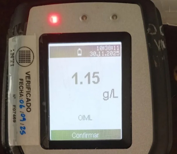Más tarde, el sindicado como autor del hecho se presentó en la comisaría local donde se realizó el test de alcoholemia cuyo resultado fue de 1,15 g/l de alcohol en sangre.