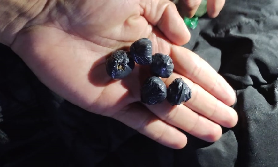 Durante su identificación, los efectivos constataron que llevaba un bulto entre sus prendas de vestir. En presencia de un testigo, establecieron que se trataba de cinco envoltorios de polietileno negros (“bochitas”) con unos 10 gramos de una sustancia verde amarronada.