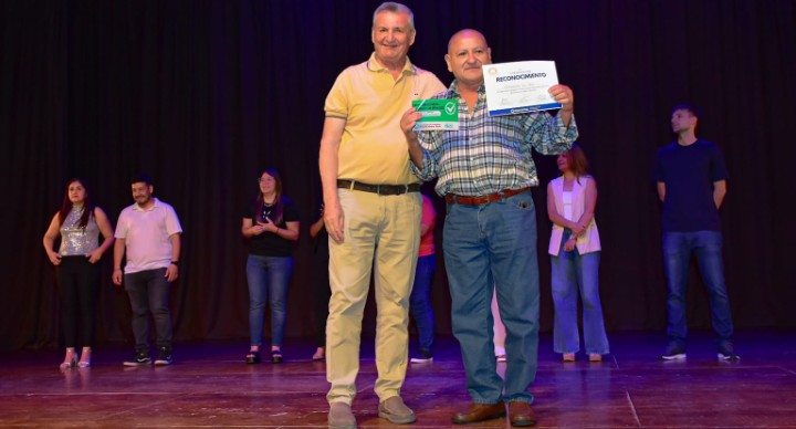 El acto de reconocimiento tuvo lugar en la noche del martes, en el Centro Cultural Municipal y contó con la presencia de la secretaria de Economía Marita Quintana; subsecretaria de Bromatología y Protección de la Salud Daniela Alcorta; el subsecretario de Gobierno, Luis Collavino; concejales y demás funcionarios municipales.